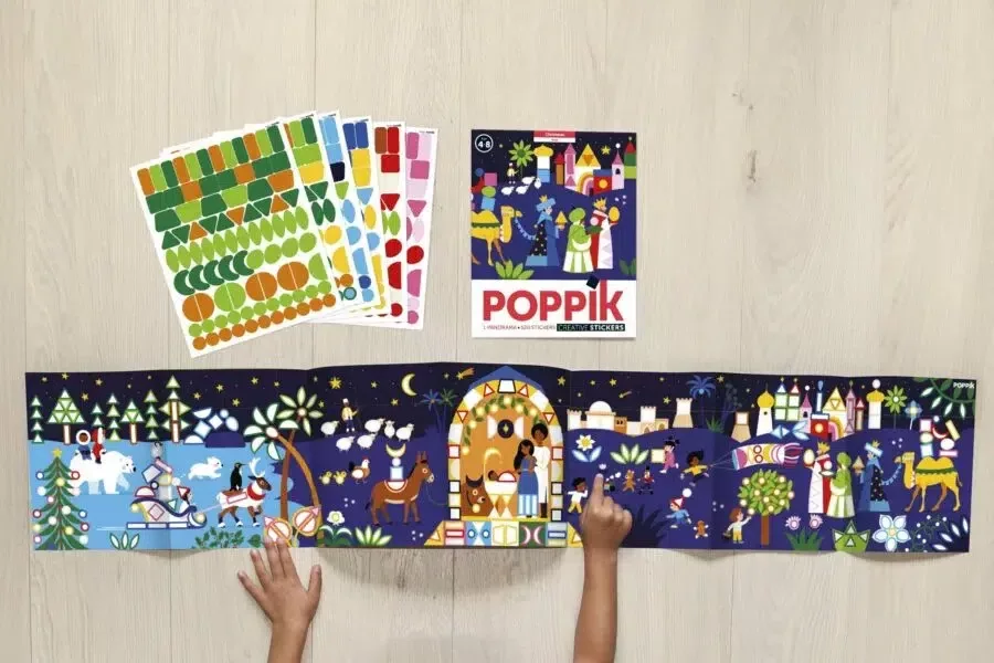 Gyere és lépj be TE is a francia Poppik márka kreatív és varázslatos világába, ahol játszva fejlesztheted gyermeked művészi érzékenységét, kreativitását, kognitív képességét, ahol a színek és formák elvarázsolják a kicsit és nagyot egyaránt. Nyisd ki a tasakot, és merülj el egy igazán színes karácsonyi dekorációban! Nincs más dolgod, mint a fehér helyeket a megadott színek szerint a helyére ragasztani. Apránként rekonstruálni fogod minden részletét: a Három Királyt, a szamarat és az ökröt, Jézust, Máriát és Józsefet, a pásztorokat és a színes dekorációt. A nagy méretű plakát elkészítve a lakás dísze lehet az ünnepek alkalmával.