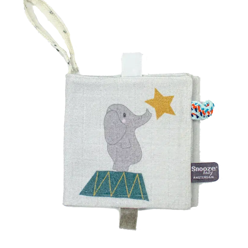 Gyönyörű babakönyv édes nyomatokkal. Zörgő, csörgő oldalak ahol sok minden történik. Könnyen rögzíthető a babakocsihoz vagy az autóüléshez. Snoozebaby címkékkel. Végtelen szórakozást kínál, és egyben serkenti a baba finommotorikai készségét és a tapintást. Mérete 10x10cm.. Kézzel, 100%-ban biopamut, Öko-tex anyagokból készült, GOTS minősítéssel. Ultrapuha, társadalmilag és környezetbarát módon,  holland dizájnnal.